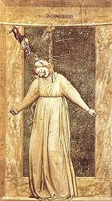 При суїциді за допомогою повішення жертва самогубства використовує довгастий еластичний матеріал (мотузку або шнур) для створення петлі або затяжного вузла навколо шиї, закріплюючи інший кінець на міцному пристосуванні. Залежно від положення петлі й інших чинників, жертва суїциду гине від задухи або перелому шийного відділу хребта. У разі настання смертельного результату справжня причина обумовлена висотою падіння, тобто відстанню, яку жертва суїциду долає до натягу мотузки.