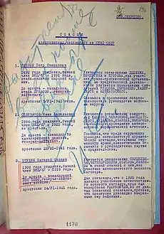 - начальник відділу цього ж полігону, військовий інженер 1-го рангу В. Я. Цилов (нар. 1896, член ВКП (б) з 1918)