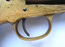 - Прибираний спусковий гачок — також не захищений скобою, натомість хвіст в неробочому положенні повертається на шарнірі вперед і притискається до нижньої поверхні рамки. Застосовувався на кишенькових револьверах XIX ст.