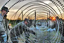 У мирний час використовується для облаштування обгороджувань об'єктів, що охороняються. Наприклад, в'язниць або військових об'єктів, хоча часто її використовують для посилення огорож на закритій території цивільних об'єктів: на заводах, гаражах, складах і тому подібне.