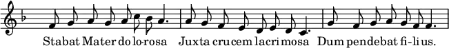 У римо-католицьке Богослужіння Stabat Mater увійшла наприкінці XIV століття як секвенція, що звучала після Alleluia перед виголошенням Євангелія у Месі Співчуття Благословенній Діві Марії — Stabant juxta crucem (Стояння під Хрестом). Секвенція Stabat Mater з «Liber usualis»: