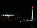 Вид на стадіон та монумент ідеям Чучхе.