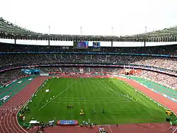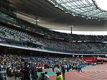 «Стад де Франс» має пересувне покриття, під яким знаходяться бігові доріжки для легкої атлетики.[11] Стадіон був розроблений, зокрема, за допомогою програмного забезпечення для моделювання натовпу для того, щоб отримати точні спостереження про те, як він буде виглядати повністю розробленим.
