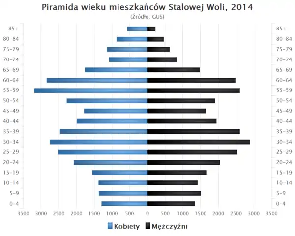 - Вікова піраміда мешканків Стальової Волі у 2014 році[2].
