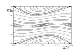 де функція періодична з періодом 1 функція, що на одному періоді збігається з -функцією Дірака. З вищенаведеної функції Гамільтона елементарно одержується стандартне відображення.