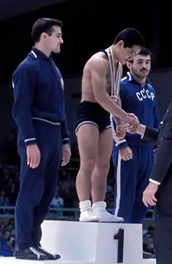 ![]() Станчо Колев (ліворуч) на п'єдесталі літніх Олімпійських ігор 1964 року в Токіо Станчо Колев (ліворуч) на п'єдесталі літніх Олімпійських ігор 1964 року в Токіо | ||||||||||||||||||||||||||||||||||||||