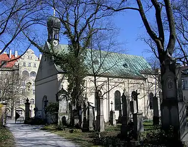 Під час Тридцятилітньої війни стіни та інші кам'яні споруди цвинтаря були знесені через побоювань, що шведи зможуть використовувати їх які укріплення.