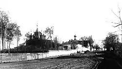 Нас оточили поліцейськими собаками та повели розмоклим снігом, убогими міськими вулицями, серед бідних міських будинків та критих соломою мазанок. Вискочив якийсь хлопчик, швидко передав нам кавуна та втік… Більшість прибулих розмістили в монастирських будівлях на території майбутнього табору, а частину, яку туди не вдалося заштовхати (був серед них і я), — у якійсь установі або в тюрмі в центрі міста. Там утримували нас — кілька сотень — в огородженому цегляним парканом дворі, чотирьох маленьких флігельках і на великому подвір'ї для возів, де валялися обривки брудного паперу, книг і журналів зі знищеної бібліотеки. В одній із цегляних стін, що оточували цей двір, була вибита кулями вм'ятина на рівні голови людини, що стоїть. Нам розповідали, що саме на цьому місці в 1917 році розстрілювали буржуїв; таку ж вм'ятину я бачив в кладці стіни, що оточувала Старобільський монастир. Там, за чутками, розстрілювали черниць жіночого монастиря.