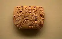 До цього часу через неможливість швидко проводити по глині криволінійні фігури без задирок, знаки перетворилися вже просто в комбінації прямих рисок, в яких важко було впізнати первинний малюнок. При цьому кожна рисочка через натиски на глину кутом прямокутної палички отримувала клиноподібний характер; внаслідок цього таке письмо називається клинописом. Кожен знак в клинописі може мати кілька словесних значень і кілька суто звукових (зазвичай говорять про складові значеннях знаків, але це невірно: звукові значення можуть означати і півсклада, наприклад, склад боб можна написати двома «складовими» знаками: Бааб; значення буде те ж, що і при одному знакові баб, різниця — в зручності заучування і в економії місця при написанні знаків, але не в читанні). Деякі знаки могли бути також і «детермінативами», тобто нечитабельними знаками, які тільки вказують, до якої категорії понять відноситься сусідній знак (дерев'яні або металеві предмети, риби, птиці, професії тощо); таким чином полегшувався правильний вибір читання з декількох можливих.