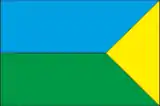 Прямокутне полотнище із співвідношенням сторін 2:3 складається із двох рівновеликих смуг - синьої і зеленої. Від верхнього і нижнього вільних кутів до лінії перетину виходить жовтий трикутник в 1/3 довжини прапора.
