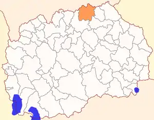 - із заходу → община Куманово;