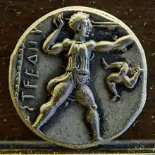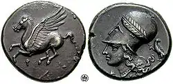 - Аттичний золотий статер, в основному карбувався у 5 ст., вага бл. 8.6 гр.