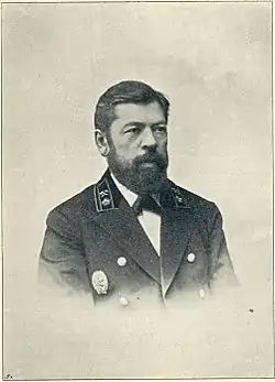 - На світлині зображений інженер Олександр Миколайович Пушечніков у мундирі статського радника (1900 рік). Арматура із зображенням «сокири та якорю» вказує на співробітника залізниці. На 1900 рік був конструктором Забайкальської залізниці.