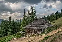 Колиба, як і стая, має зрубну конструкцію, але складається тільки з одного приміщення. Спали в колибах або на облаштованих під стінами прічах, або просто на підлозі.