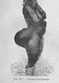 Фігурки доісторичних жінок, знайдені в печерах Південної Франції та Австрії, і деякі наскельні розписи свідчать, що стеатопігія раніше була досить поширена в первісних суспільствах в Європі. Дехто ставить під сумнів коректність діагнозу «стеатопігія» щодо цих зображень, оскільки у скульптур стегно випукле під кутом 120° до талії, тоді як діагноз «стеатопігія» ставиться при куті 90°.