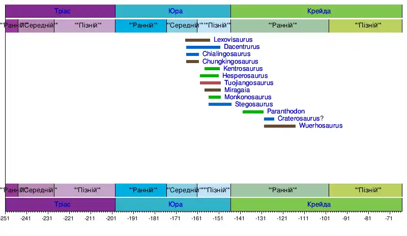 ? СтегозавровіЧас існування: Юрський період - Рання крейда 170-100 млн років тому | ||||||||||||||