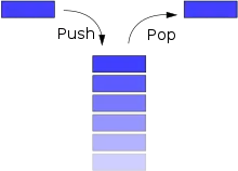- pop («виштовхнути елемент»): повертає елемент з верхівки стека. При цьому він видаляється зі стека і його місце у верхівці стека займає наступний за ним відповідно до правила LIFO, а розмір стека зменшується на одиницю. При намаганні «виштовхнути» елемент зі вже пустого стека, відбувається ситуація «незаповненість» стека (англ. stack underflow).