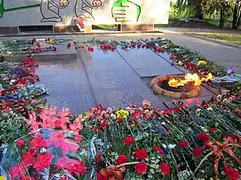 Вічний вогонь розташовується на цій же платформі. Являє собою газовий пальник, закритий декоративною металевою решіткою 0,70 × 0,70 м з об'ємною п'ятикутною зіркою. Навколо зірки — вінок з дубового листя шириною 10 см.