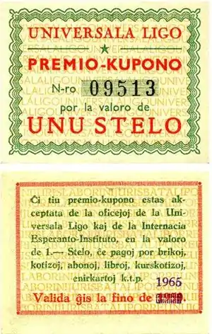 Стело, на мові есперанто Stelo, букв. «зірка», множ. ч. Steloj- міжнародна грошова одиниця, що використовувалась рухом есперантистів у 1945-1993 рр.. Прототипом для стело послужив спесміло, грошова одиниця есперантистів, що існувала перед Першою світовою війною (деякі зображення для монет стели були запозичені з монет спесо). Універсальна ліга есперантистів (Universala Ligo), утворена у підпіллі в 1942 р., карбувала монети і купони з номіналом, вираженим в стело, і продавала їх як сувеніри.