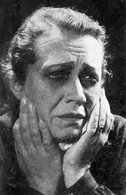 ![]() Степова у ролі «Тарасова Стаканчиха», у п'єсі «Народній Малахій», поставленої Ансамблем Українських Акторів, Аугсбург 1946. | ||||
