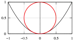- У околі точки P, відстань між точками кривої C та кола S в напрямку нормалі зменшується з кубічним або з більш високим ступенем відстані до P в дотичному напрямку.