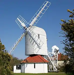 Вітряк у Гарболдісгемі, Норфолк, Англія; крила демонтовані.