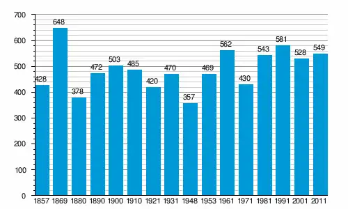 Населення громади за даними перепису 2011 року становило 2 407 осіб[2]. Населення самого містечка становило 549 осіб.[2]