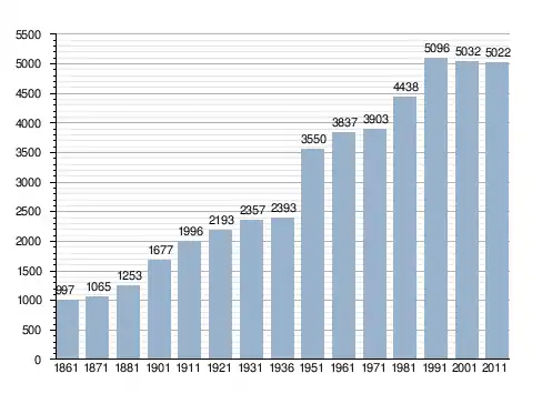 Станом на 31 грудня 2014 року в муніципалітеті офіційно проживало 819 іноземців з 19 країн, серед них 638 громадян країн Євросоюзу та 63 громадяни України.[4]