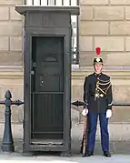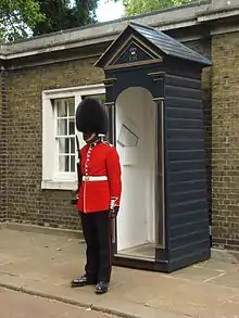 - Compare: Sturgis, Russell, ред. (1901). Sturgis' Illustrated Dictionary of Architecture and Building: An Unabridged Reprint of the 1901-2 Edition. Dover Architecture 1 (вид. Unabridged reprint). Courier Corporation (опубліковано 2013). с. 343–344. ISBN 9780486148403. Процитовано 30 грудня 2015. «BOX. [...] A small shelter for one or more persons engaged in specific duties; as, in military usage, a small movable wooden hut to afford shelter for a sentry, often somewhat elaborately decorated with the national colours: a sentry box [...].»