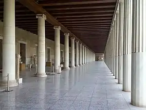В Афінах була особливо відома «Строката» Колонада (грец. στοα Ποικίλη), прикрашена пензлем Полігнота. Нерідко стоя мала два ряди колон, як наприклад, в Піреї. Королівська стоя (грец. Στοα βασίλειος або грец. βασιλική) в Афінах, в якій засідав архонт, була розділена трьома рядами колон на три частини (алеї), з яких середня закінчувалася півколом (грец. άψίς). Ця колонада була прототипом римських базилік, які від неї отримали своє найменування. У стародавніх Афінах назву стоя мали багато будівель серед крамниць, комор тощо.