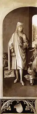 На зовнішніх стулках зображені святі Яків і Бавон, написані в різних відтінках сірого.