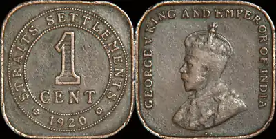 Перші монети, випущені для розрахунків Стрейтс у 1845 році було 1/4, 1/2 і 1 мідних центів. Вони були випущені Ост-Індською компанією і не несуть будь-яких вказівок про те, де вони повинні були бути використані. Друге питання з тих же номіналів був проведений у 1862 році урядом Британської Індії. Це був напис "Індія - Стрейтс ".
