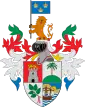 Нашоломник — половина повсталого лева, що повернув голову і тримає в лапах лазуровий штандарт із зображенням трьох золотих імперських корон.