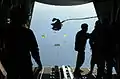 Солдат 1-го батальйону 1-го парашутного загону сил спеціальних операцій ВМС США стрибає з вертольота CH-46E Sea Knight, Окінава, Японія. 4 серпня 2004