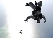 Парашутисти-рятівники спецоперацій ПС США здійснюють затяжний бойовий стрибок з висоти 4 км у ході операції «Непохитна свобода». 23 лютого 2003