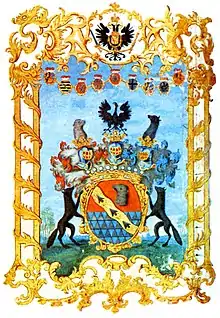 Герб роду барона Строгонова (Строганова), що має титул графа Римської імперії