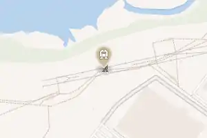 Станція з колійним розвитком — 2 стрілочних переводи, пошерстний з'їзд (з боку станції Ярмарок), 1 станційна колія для обороту і відстою рухомого складу і 1 колія для відстою рухомого складу.