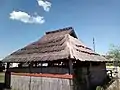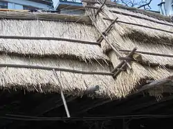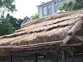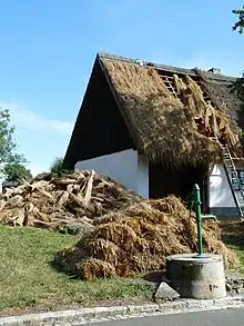 Солом'яний дах могли поєднувати з дерев'яним: або завершувати дерев'яне покриття нижньої частини покрівлі солом'яною стріхою, або навпаки, робити верхню частину стріхи з дощок, дранки[10].
