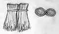 Матеріал в'яжуть у невеликі снопи, обв'язуючи їх солом'яним або мотузковим перевеслом у місці гузиря. Потім сніп розділяють вздовж на дві рівних частини, просовуючи між стеблами дерев'яну паличку 35 см завдовжки, сочевицеподібного перерізу (із загостреними крайками). Розділені «пасма» стебел перекручують одне відносно одного на 360°, при цьому перевесло має утворити «вісімку». Готовий куль складається з двох зв'язаних сніпків, що щільно прилягають один до одного.
