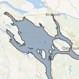 ![]() Озеро Стуршен. Вид з боку селища Уррвікен, розташованого на південно-східному березі озера. На далекому плані — гора Орескутан. | ||||