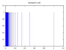 - Локально стягувані простори не обов'язково є стягуваними. Прикладом є така підмножина з індукованою топологією: (див графік справа).