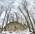 Вихід скельної породи з печерою на схилі гори, Камінь Диравець