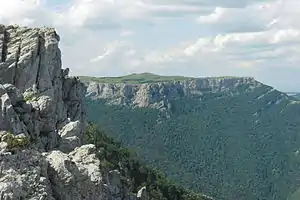 Стіл-Гора (праворуч), яка обривається в ущелину Хапхал.