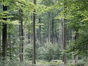 В лісі домінує бук. Середній вік буків становить 140 років. В лісі нараховується близько 35000 високих дорослих дерев, або приблизно 7 високих дерев на 1 гектар, що аналогічно концентрації таких дерев у первісних лісах. Висота буків сягає 50 метрів. Окрім буку тут зростають дуб скельний, береза, клен, липа і граб.[5]