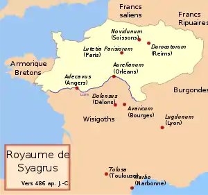 В 481 році помер король франків Хільдерік І, а новим королем став його син Хлодвіг, що розпочав війну проти області та після тривалих бойових дій, розгромив Сіагрія в битві при Суассоні в 486 році. Сіагрій зумів втекти, але скоро був схоплений вестготами та виданий франкам, які стратили його в 487 році. Таким чином, Суассон втратив свою незалежність та став частиною королівства франків, а пізніше Нейстрії.