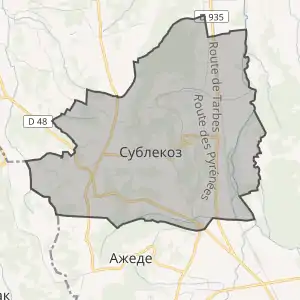 - Розташування муніципалітету Сублекоз на мапі Франції та сусідні муніципалітети