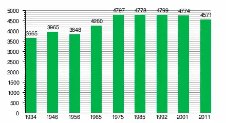 За даними перепису населення 2011 року у місті проживала 4571 особа.