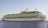 | Voyager of the Seas | 1999 | 21 листопада 1999 | 138,194 | Сідней, Шанхай, Тяньцзінь, | На час введення в експлуатацію був найбільшим круїзним кораблем у світі. Це перший корабль, який мав льодову ковзанку, і перше судно з Королівським променидом[1] | ![]() |