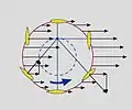 Рушій складається з круглої пластини, яка обертається навколо вертикальної осі, з безліччю вертикальних лопатей. Кожна лопать обертається навколо вертикальної осі по епіциклоїді за допомогою внутрішнього механізму, який змінює кут атаки лез у синхронізації з обертанням пластини, так щоб кожна лопать могла забезпечити поштовх в будь-якому положенні, подібно роботі автомата перекосу у вертольоті.