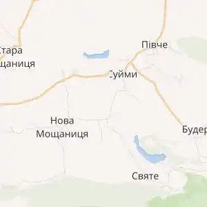 Суйми межують з селами Півче, Будераж, Нова Мощаниця, Білашів. Неподалік Суєм знаходяться Гурбенські ліси, де в роки II світової війни точилися кровопролитні бої між УПА і загонами НКВС.